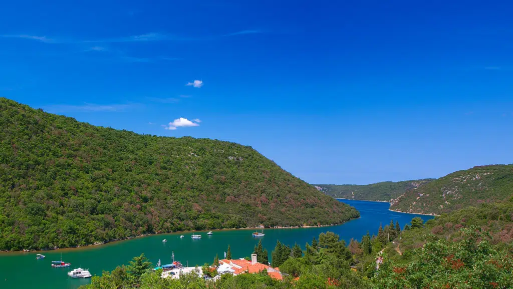 Der Lim-Kanal verläuft zwischen den Ferienregionen Vrsar und Rovinj und ist eine wahre Naturschönheit in Istrien. Er hat eine Länge von rund 11 Kilometern und führt durch ein malerisches Flusstal ins Meer. Dank des relativ geringen Salz- und hohen Sauerstoffgehalts werden hier Fische und Muscheln gezüchtet. Bootsfahrten in den Limski Fjord sind eine beliebte Aktivität, die in den umliegenden Ferienorten angeboten werden. Aber auch wenn du mit dem Auto unterwegs bist, kannst du entlang der Küstenstraße schöne Aussichtspunkte über den Kanal genießen.